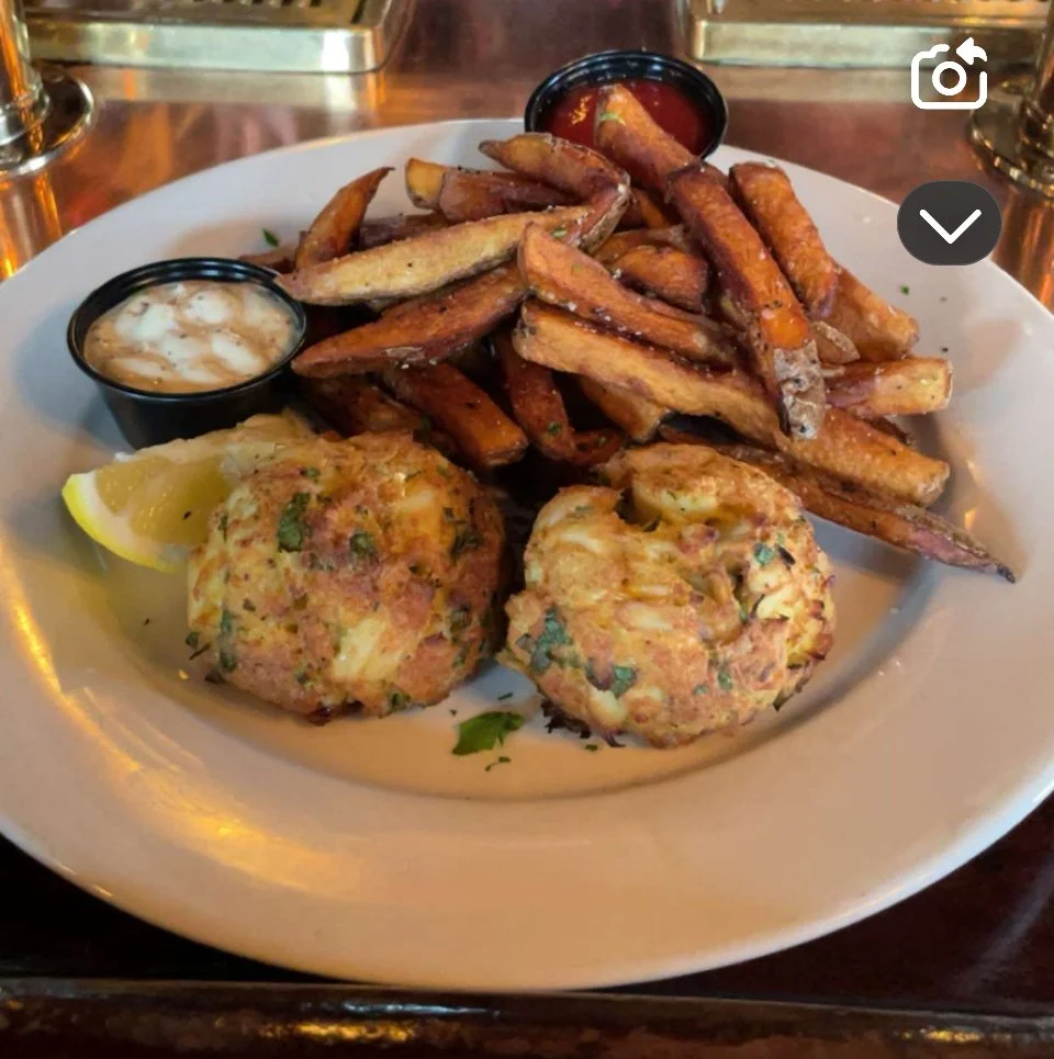 First up was One Eyed Mike’s, serving a hearty crab cake alongside grilled asparagus and creamy coleslaw. The cake had generous chunks of crab meat and that classic Maryland flavor — savory, slightly sweet, and perfectly seasoned. It was definitely a strong contender, though it ranked third in this close race (or maybe tied for second). Still, a great crab cake worth ordering if you’re in the neighborhood.